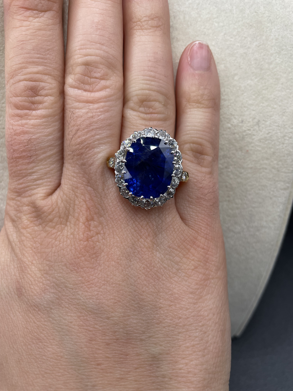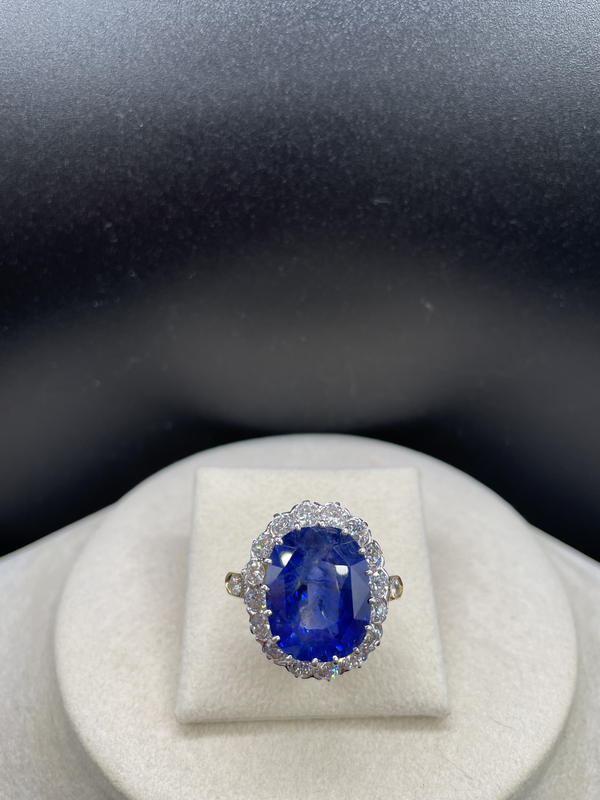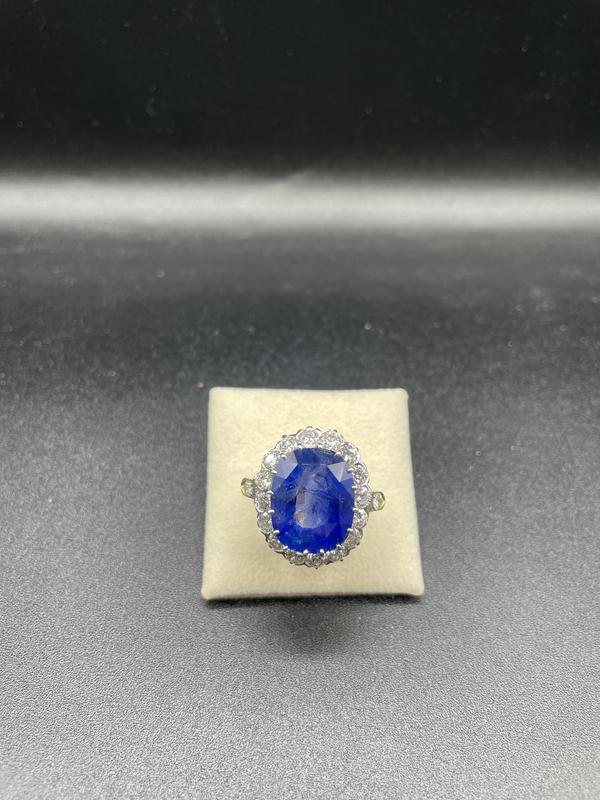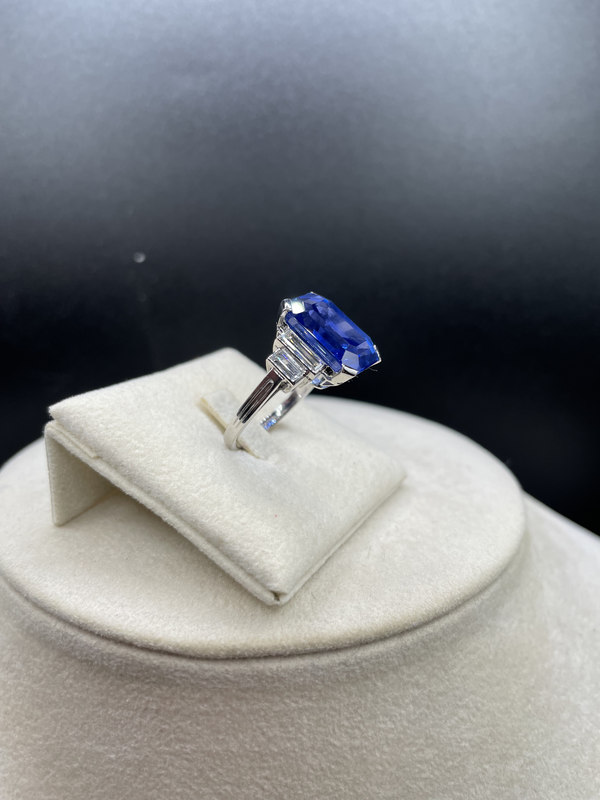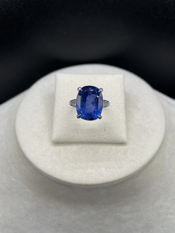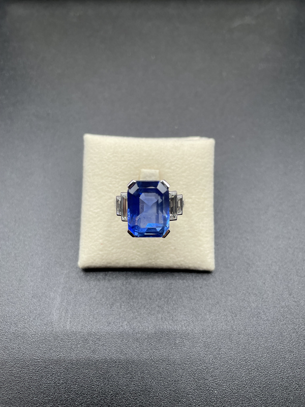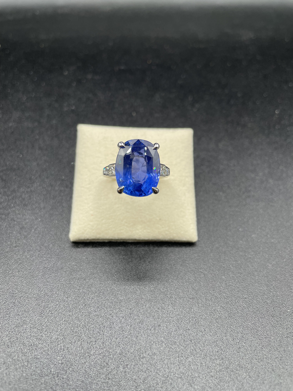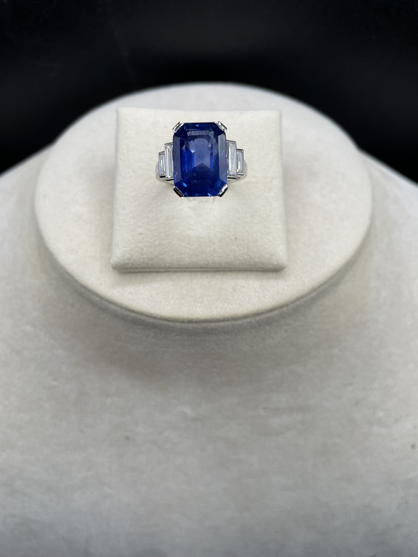 1 BAGUE SAPHIR Birman Myanmar 12,11 ct Platine, brillants, brut: 7,28 grs. Photocopie Lab Paris. |