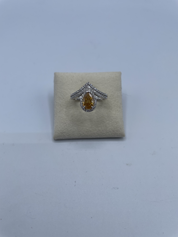 1 BAGUE Or, Brillant Poire pesant 1,12 ct Fancy intense orange yellow et petits brillants sur la monture, brut: 4,46 grs. Photocopie GIA |