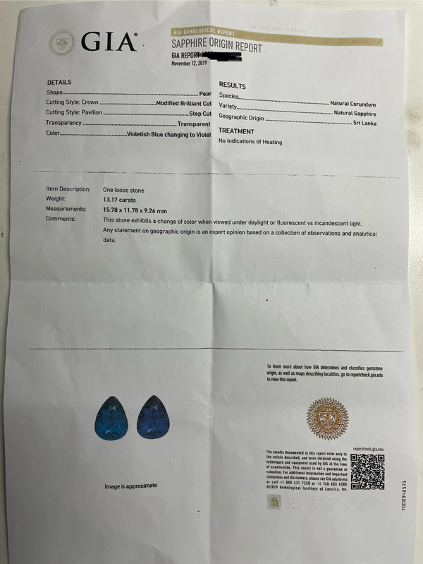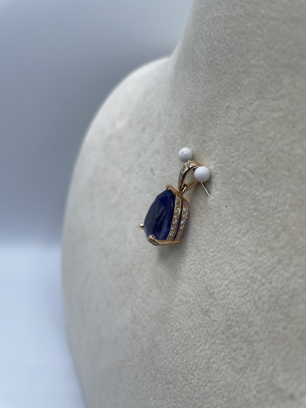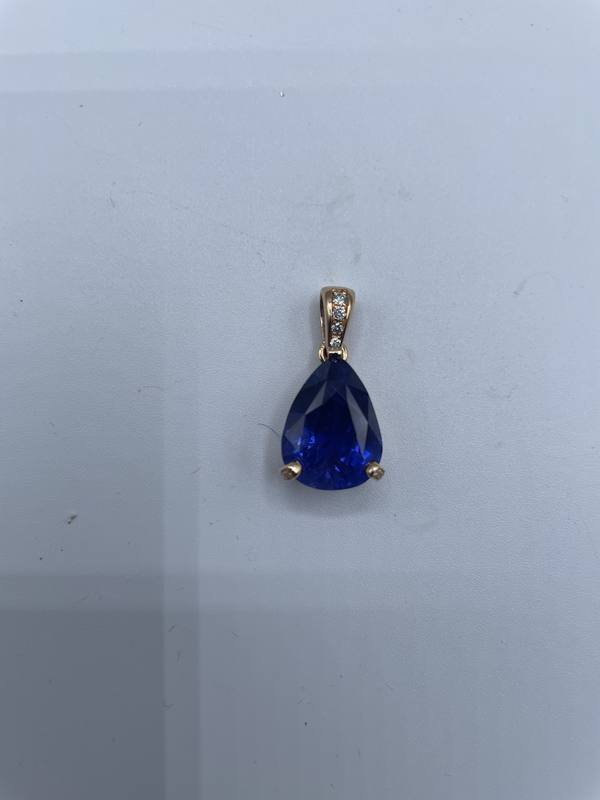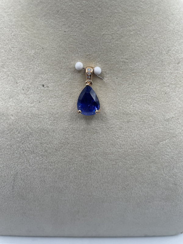 1 PENDENTIF Or, brillants, Saphir Sri Lanka de forme Poire non chauffé pesant 13,17 cts brut: 5,40 grs. Photocopie GIA |