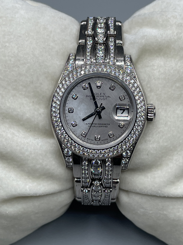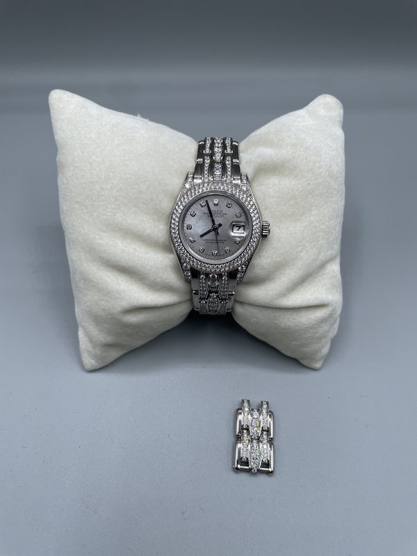 1 MONTRE marquée Rolex Datejust Pearlmaster, cadran nacre ref: 80359 + 2 MAILLONS - Or, Brillants, brut: 131,38 grs. |