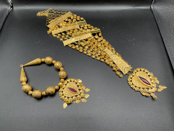 1 COLLIER Or, pierre, 74,60 grs 1 MOTIF DE COLLIER Or, métal, pierre, brut: 29,50 grs. |