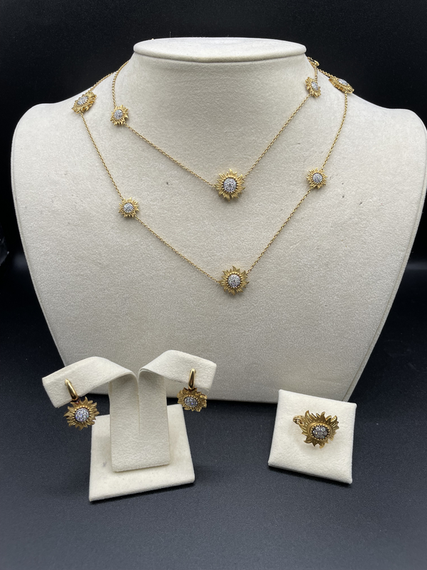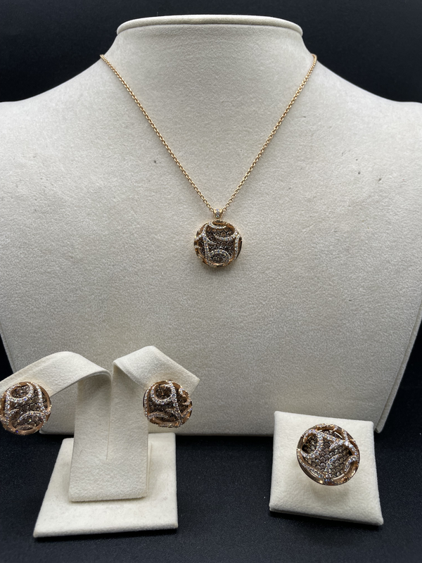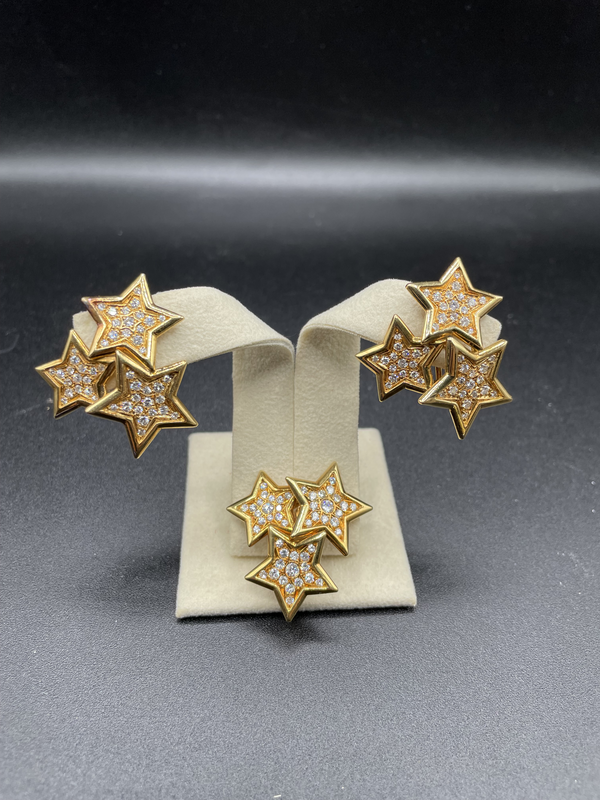 1 PARURE marquée CARRERA Y CARRERA Sol y ombra comprenant 1 BAGUE 1 SAUTOIR 1 PAIRE DE BOUCLES D\'OREILLES - Or, brillants - 60,26 grs. |
