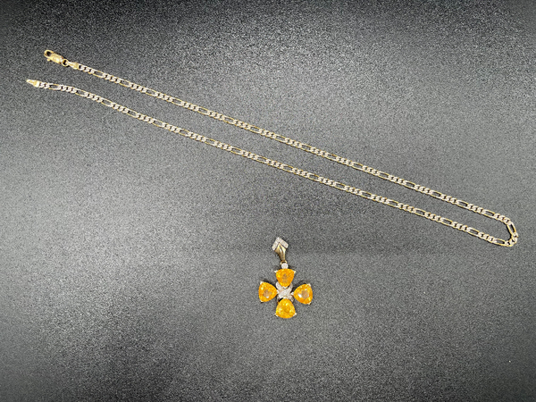 1 COLLIER Or, 8,04 grs. 1PENDENTIF Or bas, brillants, pierres, brut: 4,72 grs. |