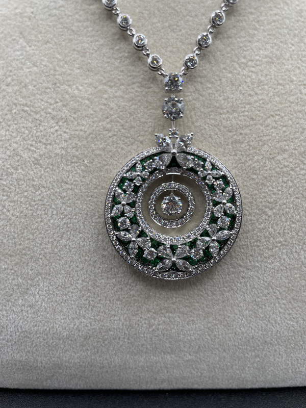 1 COLLIER marqué Graff \"Butterfly\" N° GN7696 - Or, brillants, (env: 10 cts) émeraudes, (env: 3 cts), brut: 28,48 grs. |