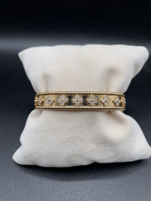 1 BRACELET marqué‚ VCA \"perlée trèfles\" N° JE647472 Or, brillants (env: 1,75 ct) - 35,48 grs. |