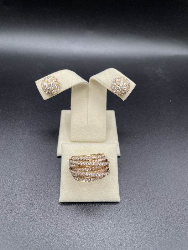 1 PARURE comprenant: 1 BAGUE 1 COLLIER 1 PAIRE DE BOUCLES D\'OREILLES - 1 PENDENTIF Or, en partie brillants (env: 11,56 ct) - 41,94 grs. |