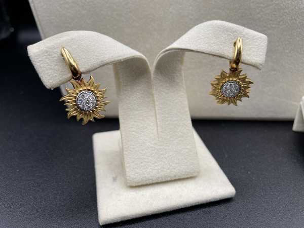 1 PAIRE DE BOUCLES D\'OREILLES Or, brillants, (env: 2,30 cts) 22,44 grs. 1 BOUCLE D\'OREILLE Or, brillants, (env: 1,50 ct) 10,88 grs. |