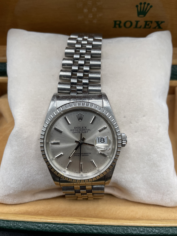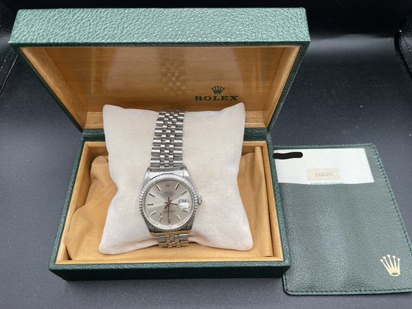 1 MONTRE marquée Rolex Datejust ref: 16220 - Acier, brut: 95,56 grs. Boite + Garantie. |