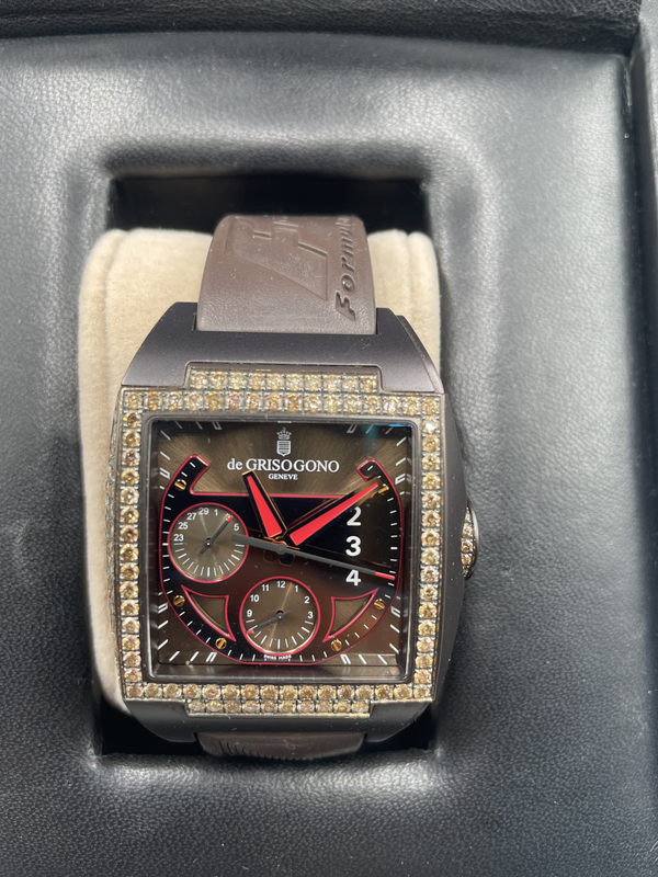 1 MONTRE marquée De Grisogono Power Breaker S05 ref: 18718 - Or, brillants, caoutchouc, brut: 216,54 grs. Boite + Facture. |