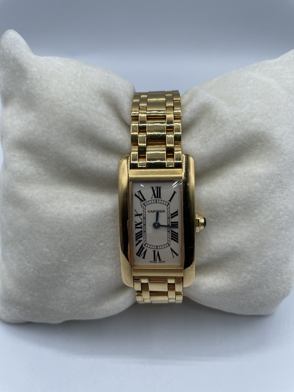 1 MONTRE marquée CARTIER Tank Americaine N° 131212NX + 2 MAILLONS Or, brut: 84,00 grs. Facture |