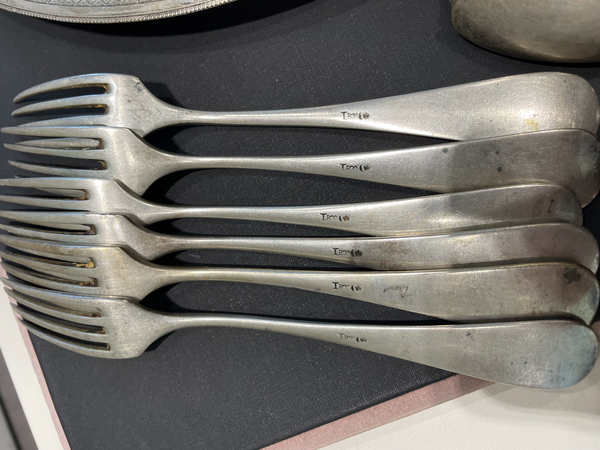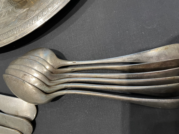 10 ARGENTERIES 6 COUVERTS 6 CUILLIERS A DESSERTS Argent, brut: 2018,38 grs. |